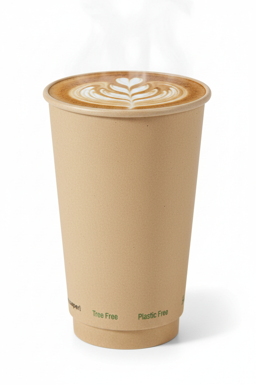 Gobelet brun en carton fibre de bambou à double paroi sans plastique, Waterbased H136mm 460ml-500Pcs