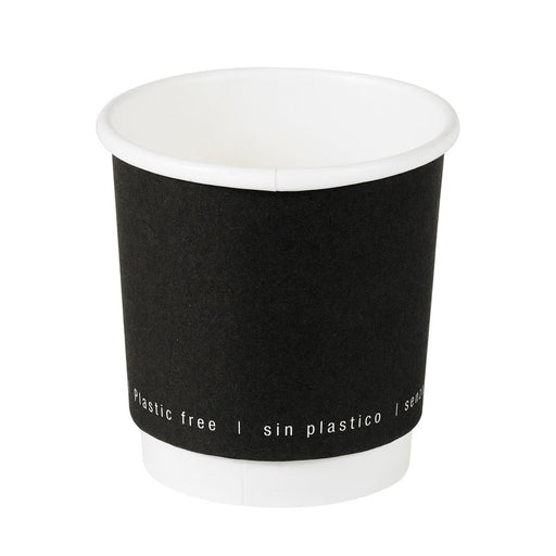 Gobelet en carton noir à double paroi sans plastique - 120 ml - 6,2 cm x 4,6 cm x 6,2 cm.
