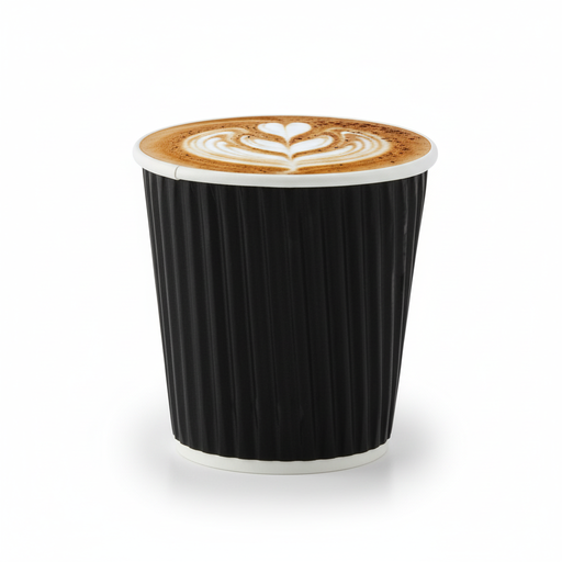 Gobelet Rippley en carton kraft ondulé noir à double paroi sans plastique, Waterbased H92mm 230ml - 500Pcs