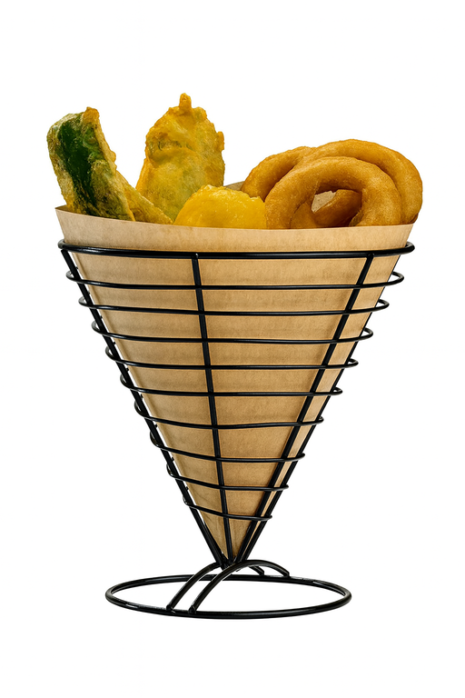Panier et cône inox noir Noir Matière: Inox Vendu par 6 unités Dimensions = Longueur : 12,7 cm Largeur : 0 cm Hauteur : 15,2 cm Poids brut : 132 g