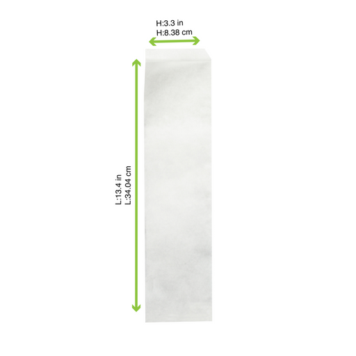 Sac papier blanc ingraissable ouvert sur 2 côtés - 34 cm x 8,5 cm