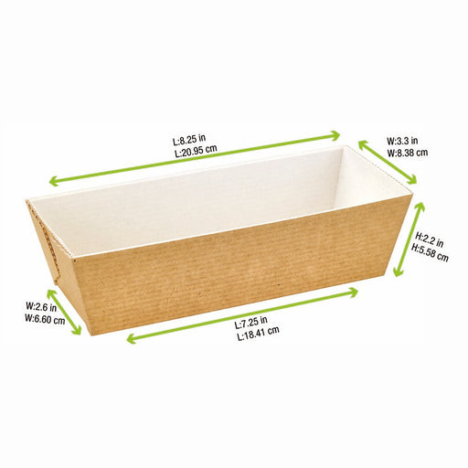 Moule de cuisson bois Naturel Matière: Papier Vendu par 100 unités Dimensions = Longueur : 24,5 cm Largeur : 11,5 cm Hauteur : 7 cm Poids brut : 31...