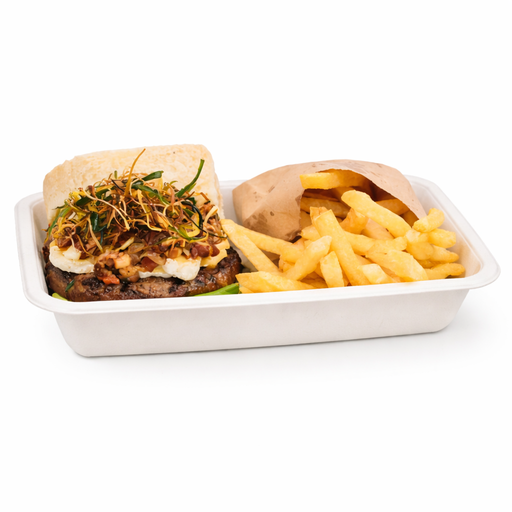 Barquette "Streat Eats" Vendu par 100 unités Dimensions = Longueur : 23 cm Largeur : 22 cm Hauteur : 9,4 cm Poids brut : 26,93 g