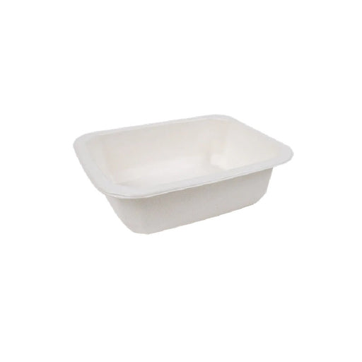 Barquette scellable blanche en pulpe de canne avec 2 compartiments 227x178mm H45mm 1060ml-200Pcs
