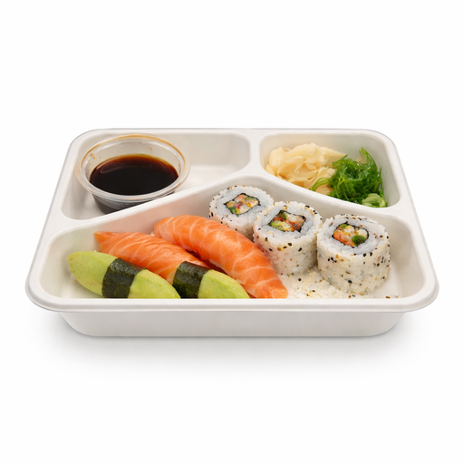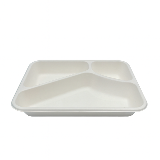 Barquette scellable blanche en pulpe de canne avec 3 compartiments 227x178mm H45mm 890ml-200Pcs