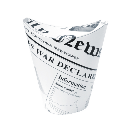 Snack au décor journal : frites ou pâtes à emporterGobelet pot en carton kraft, avec un décor de journal imprimé sur fond blanc.Gobelet pour frites...