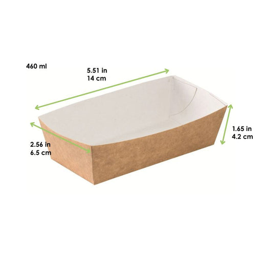 Barquette snack Brun Vendu par 600 unités Dimensions = Longueur : 14,5 cm Largeur : 8 cm Hauteur : 5,2 cm Poids brut : 11,7 g