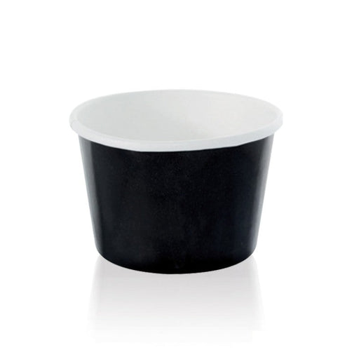 Extérieur noir et intérieur blanc pour une glace Pot à glace en carton, contenance 190 ml, de couleur noire. Il s'agit d'un pot pour glace ou produ...