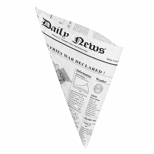 Cône papier ingraissable décor journal 250x180mm H180mm 360ml-5000Pcs