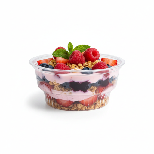 Petit pot en plastique PET de la gamme DELICO. Emballage alimentaire pour les professionnels de la restauration, les traiteurs comme les saladeries...