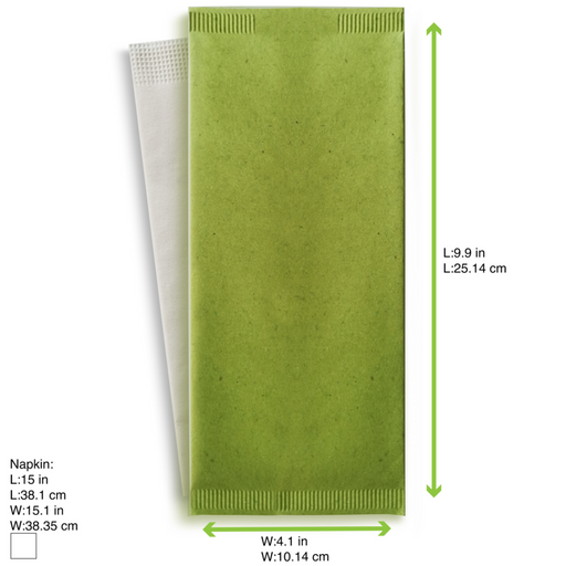 Pochette papier vert pour couverts avec serviette blanche 110x250mm-500Pcs