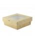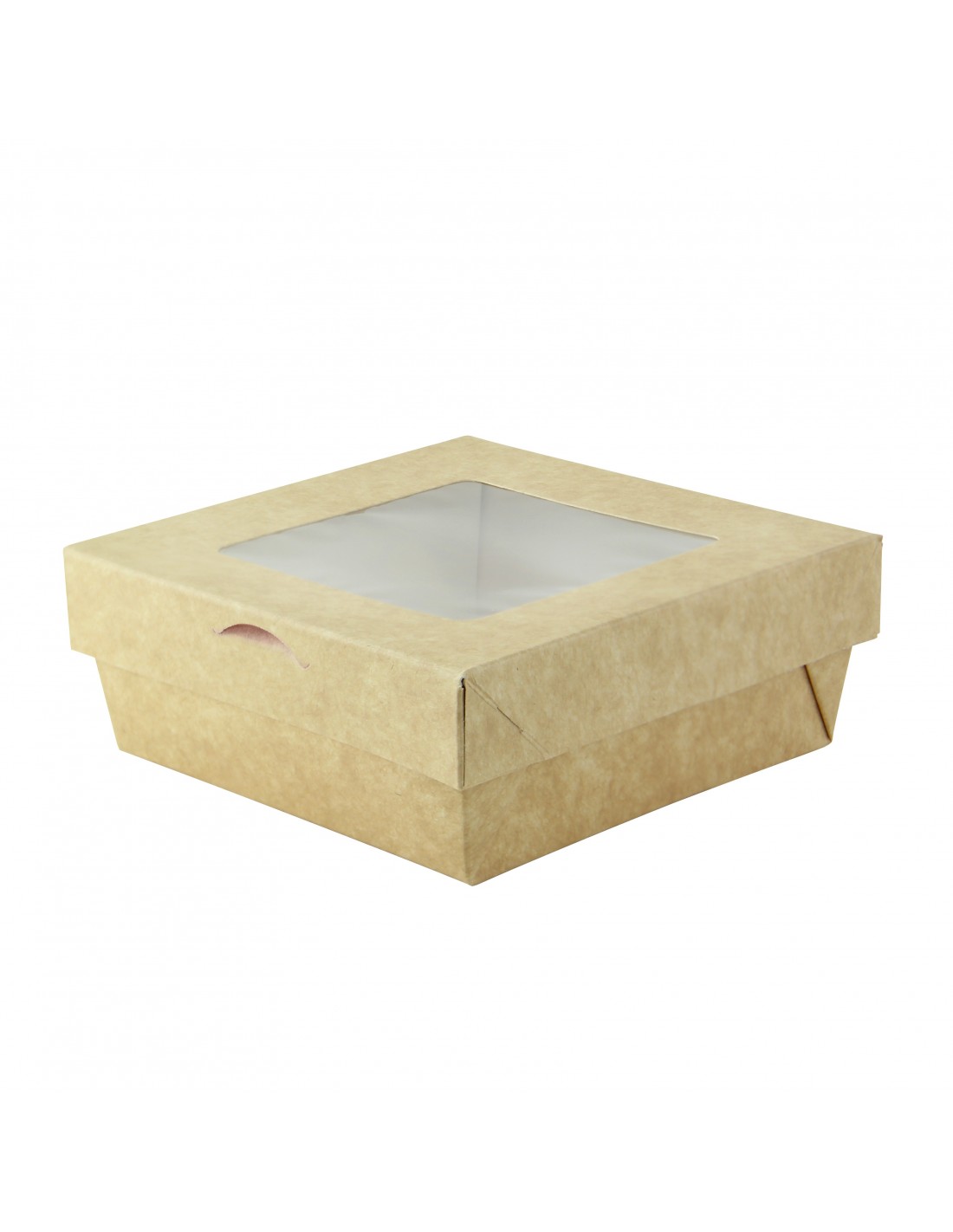 Boite "Kray" carrée carton brun avec couvercle à fenêtre 155x155mm H50mm 700ml - 100Pcs