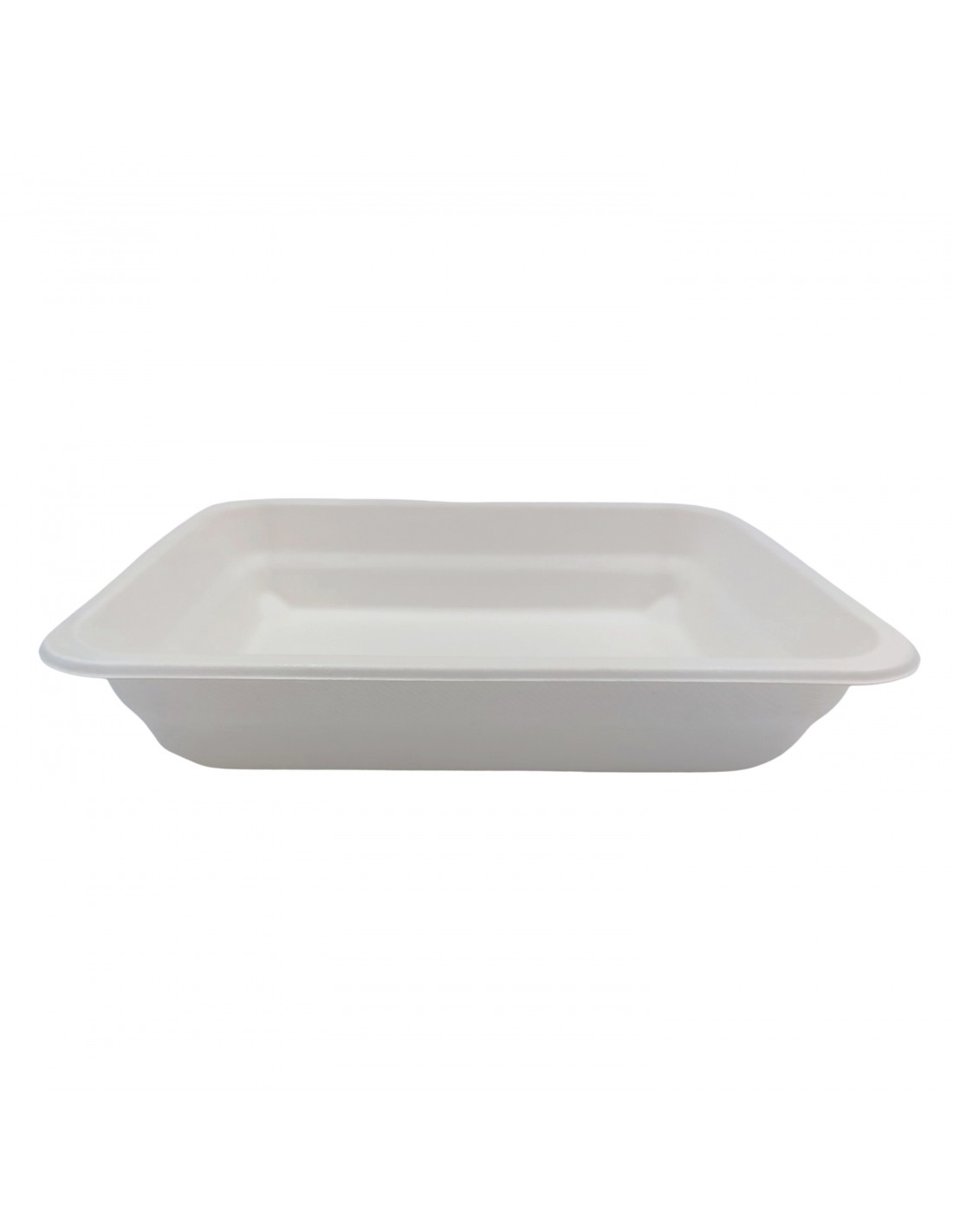 Barquette scellable blanche en pulpe de canne avec 2 compartiments 227x178mm H45mm 1060ml-200Pcs