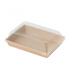 Barquette sushi en carton kraft brun avec couvercle transparent en plastique PET 153x102mm H25mm-300Pcs