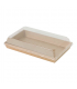 Barquette sushi en carton kraft brun avec couvercle transparent en plastique PET 225x138mm H25mm-300Pcs