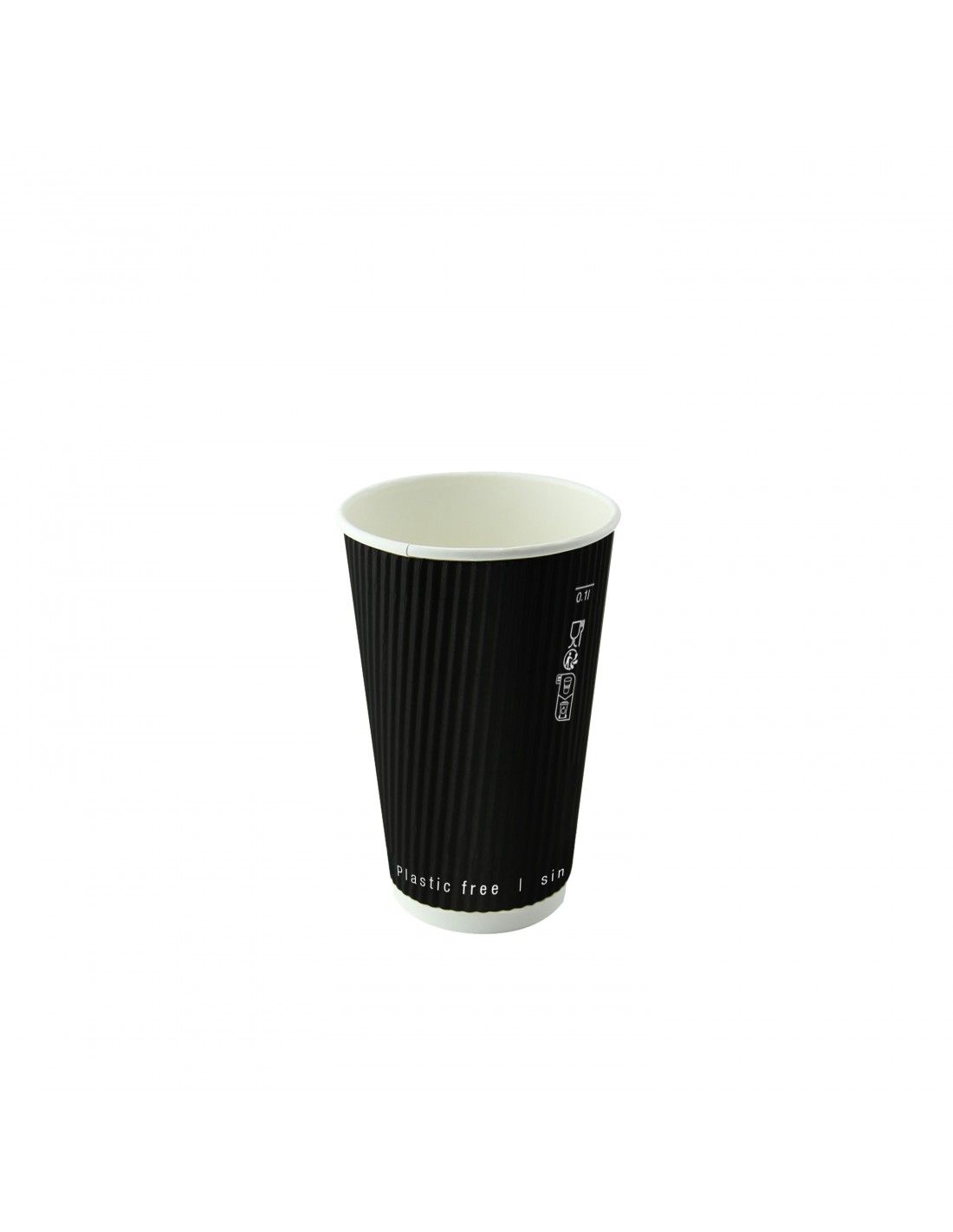 Gobelet Rippley en carton kraft ondulé noir à double paroi sans plastique, Waterbased H92mm 230ml - 500Pcs