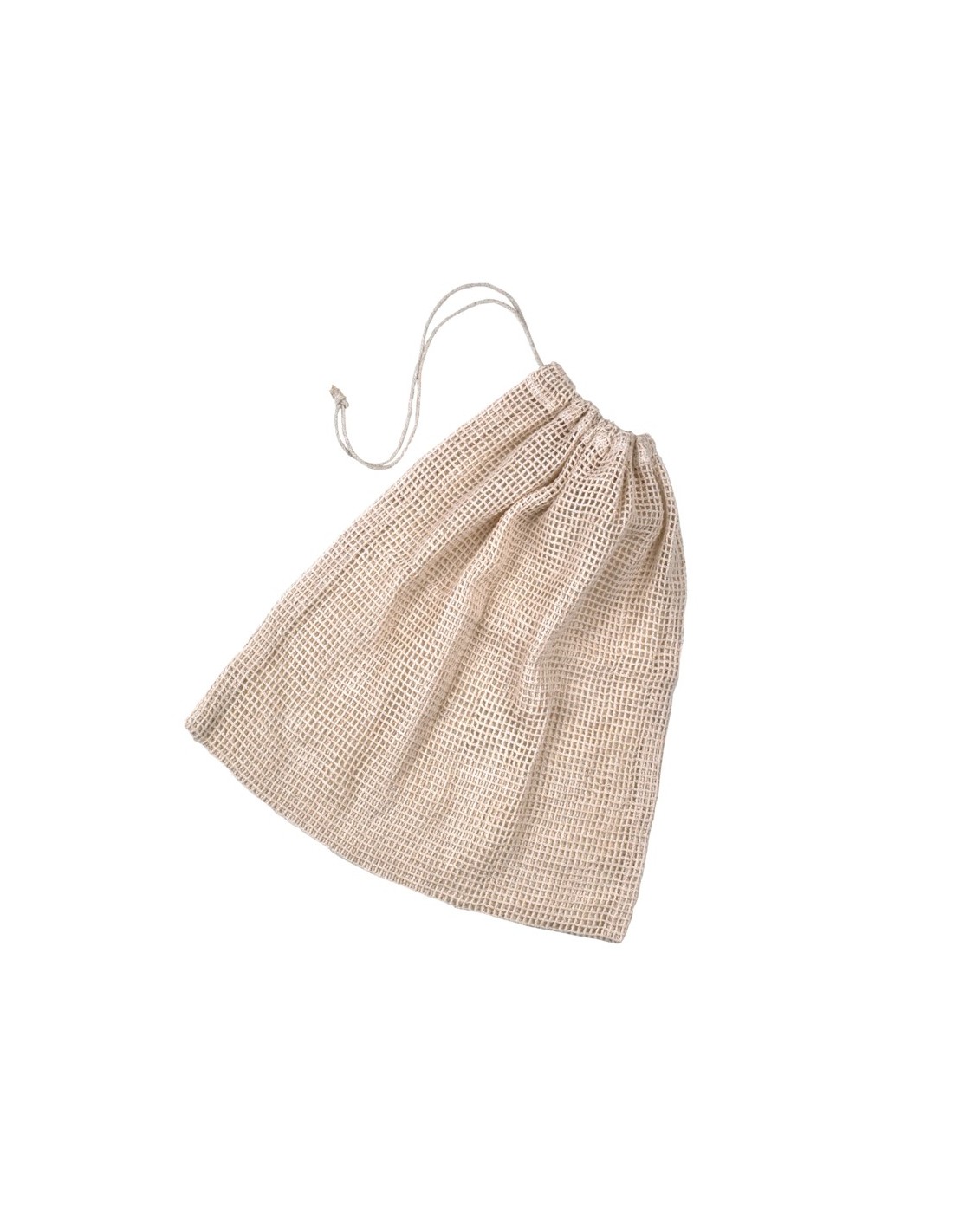 Sac en filet coton naturel fermeture en cordelette 100% cotton de 130 gsm, lavage à la main à leau froide